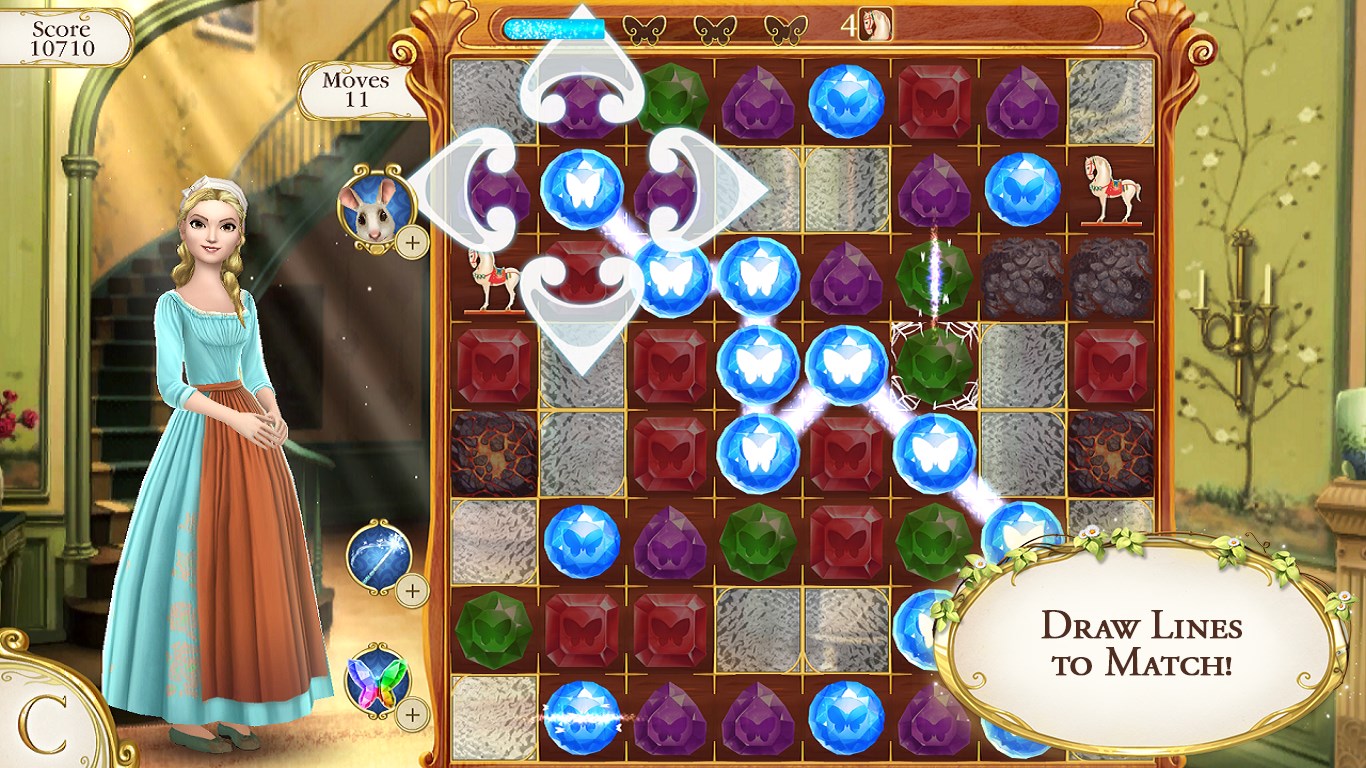 Cinderella Free Fall is an official game based on Disney’s new Cinderella live action film. If you’re looking at the photos and the blurb on the Google Play Store or Apple App Store, where it is readily available, you’ll notice that it’s a puzzle game where you play as the most iconic princess of all time. Creating longer lines than the usual three would allow you to unleash Wish Magic for powerful effects, and once you connect jewels in a circle, you’ll have a chance to release even more exciting combos. The game comes with 100 levels all in all and you can get power-ups in the form of Cinderella’s animal friends. So how can you score higher and complete levels with three-star ratings?